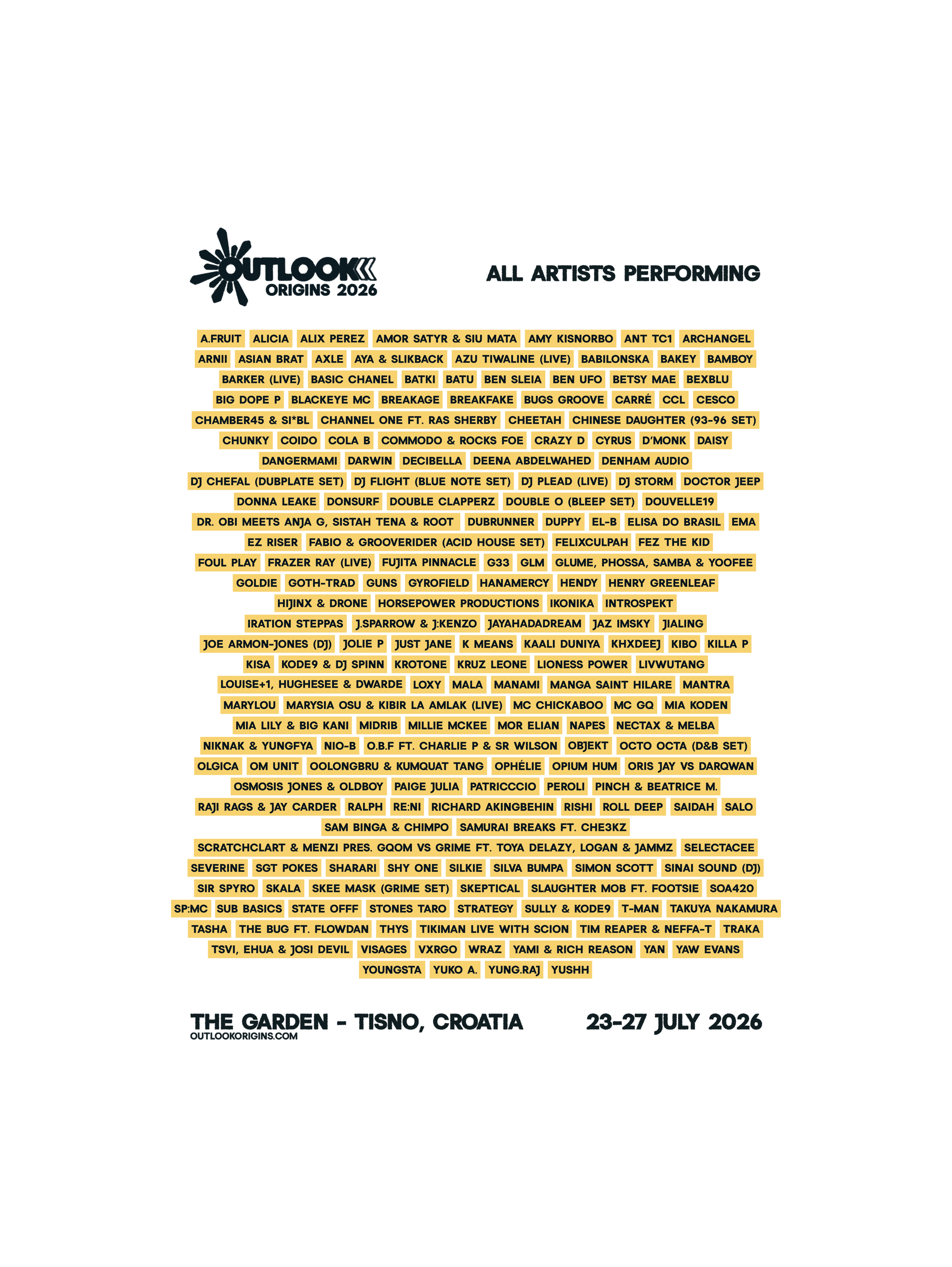 For our 6th iteration of Outlook Origins, we continue to champion UK soundsystem music in all its multitudes decorated by gorgeous Adriatic surroundings, blissful weather, punchy sound and innovative curation.